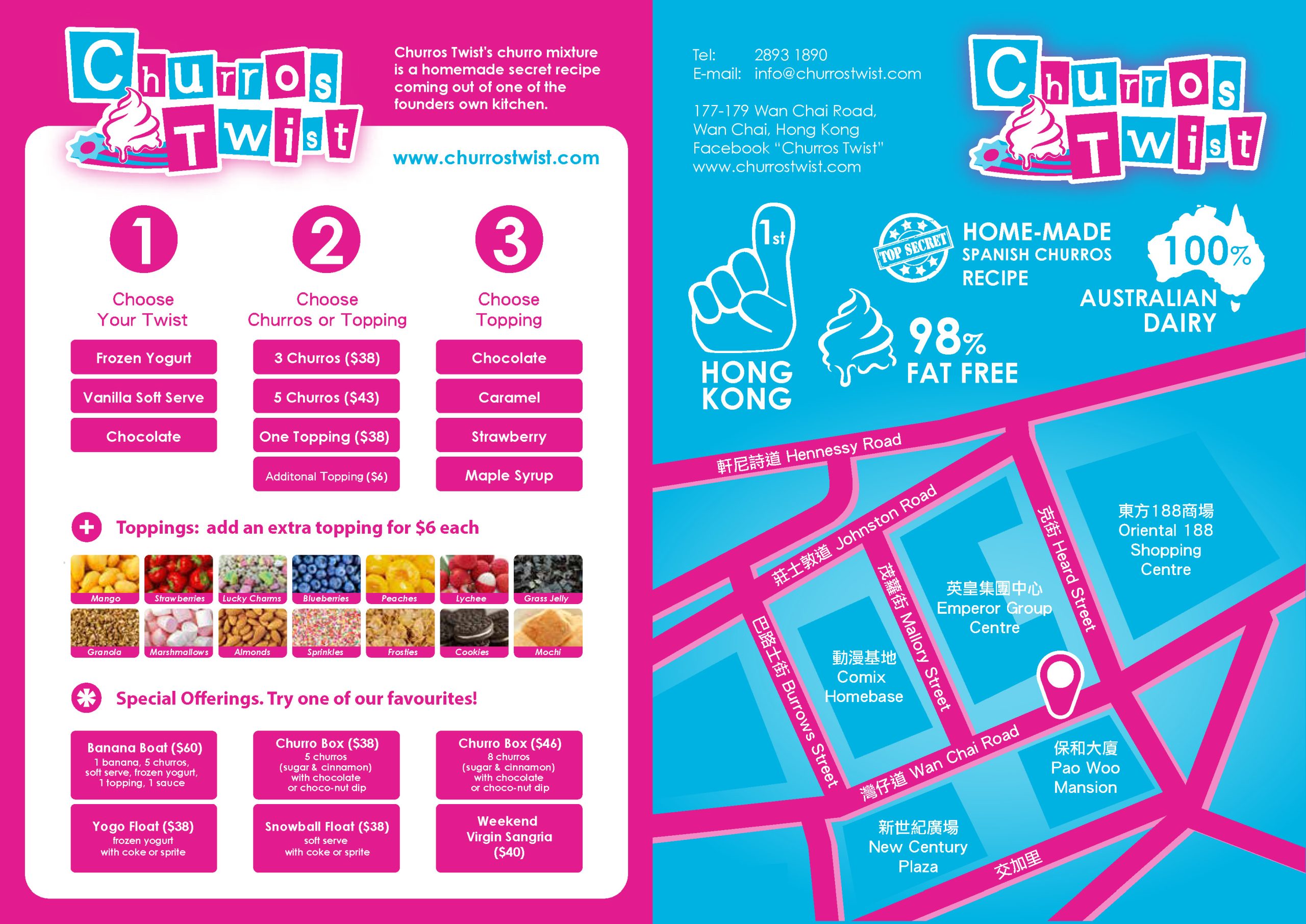 Churros Twist is a small takeaway dessert shop in Wan Chai that offers freshly-cooked Spanish churros paired with Australian frozen yoghurt or vanilla soft-serve ice-cream, which is then sprinkled and drizzled with toppings and sauces of your choice. Since churros are not only desserts but deep-fried desserts, you can see why a trip here was nothing short of a necessity.